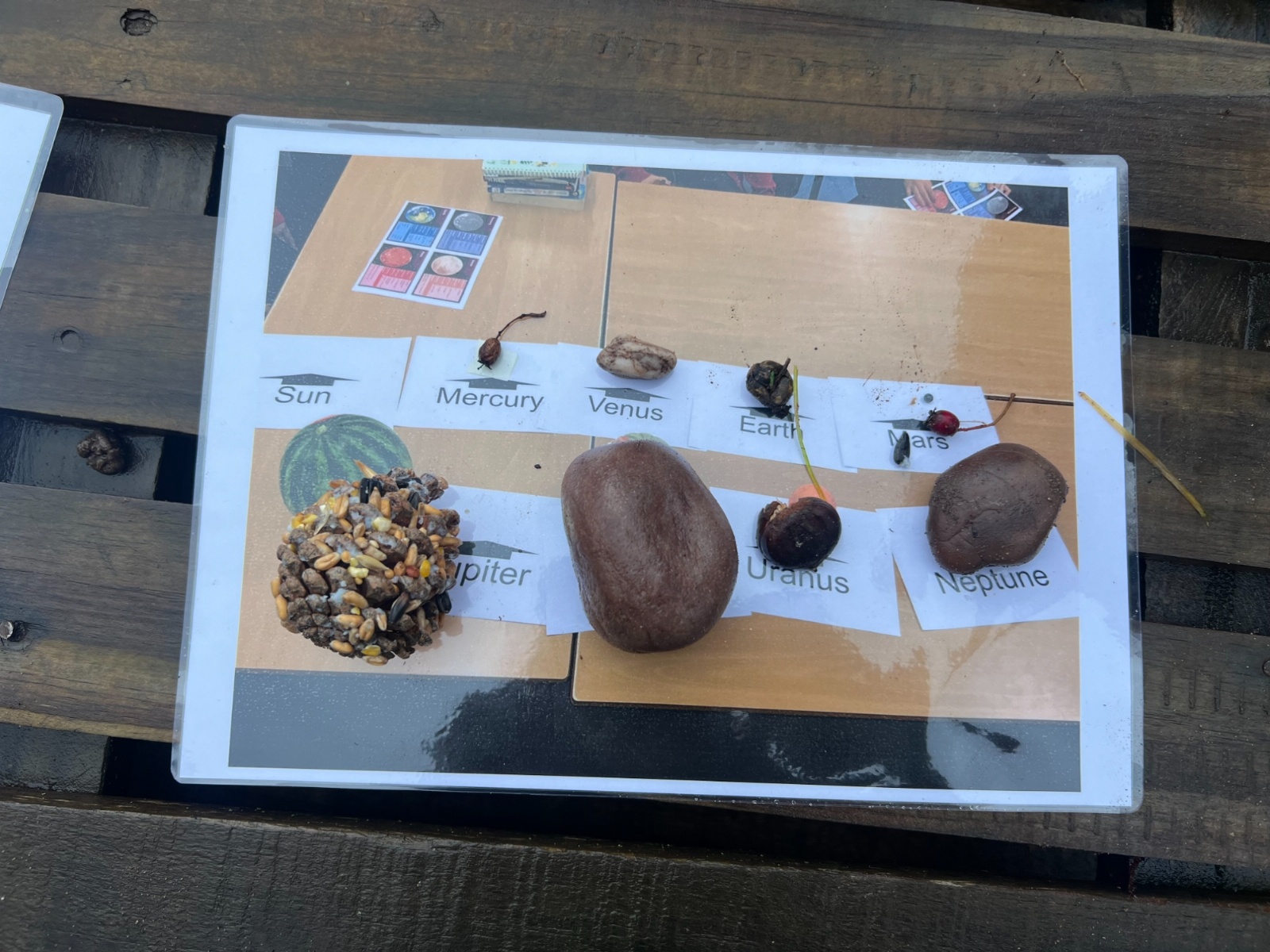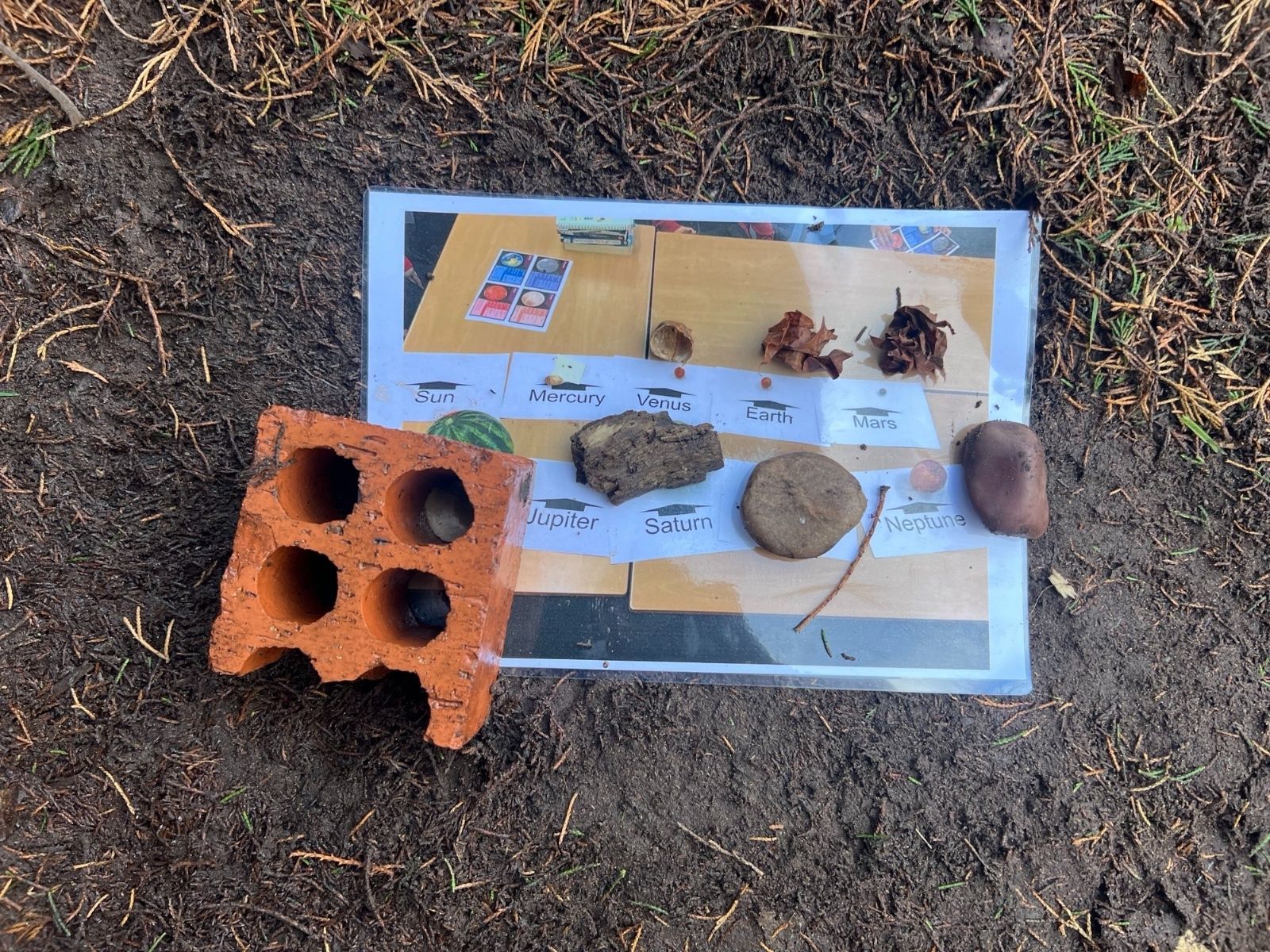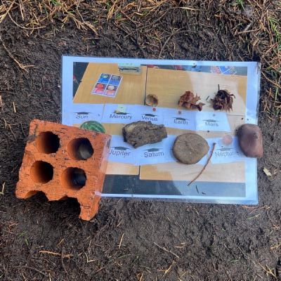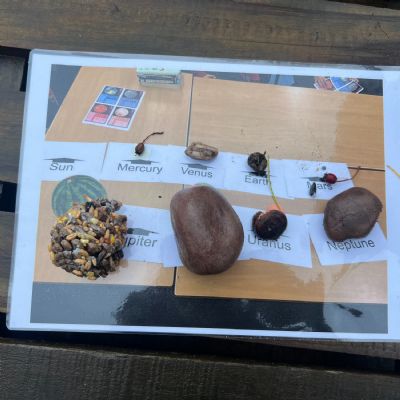 Year 6 have been learning about Earth and Space. They used their knowledge to create a scale diagram of the planets using natural materials.